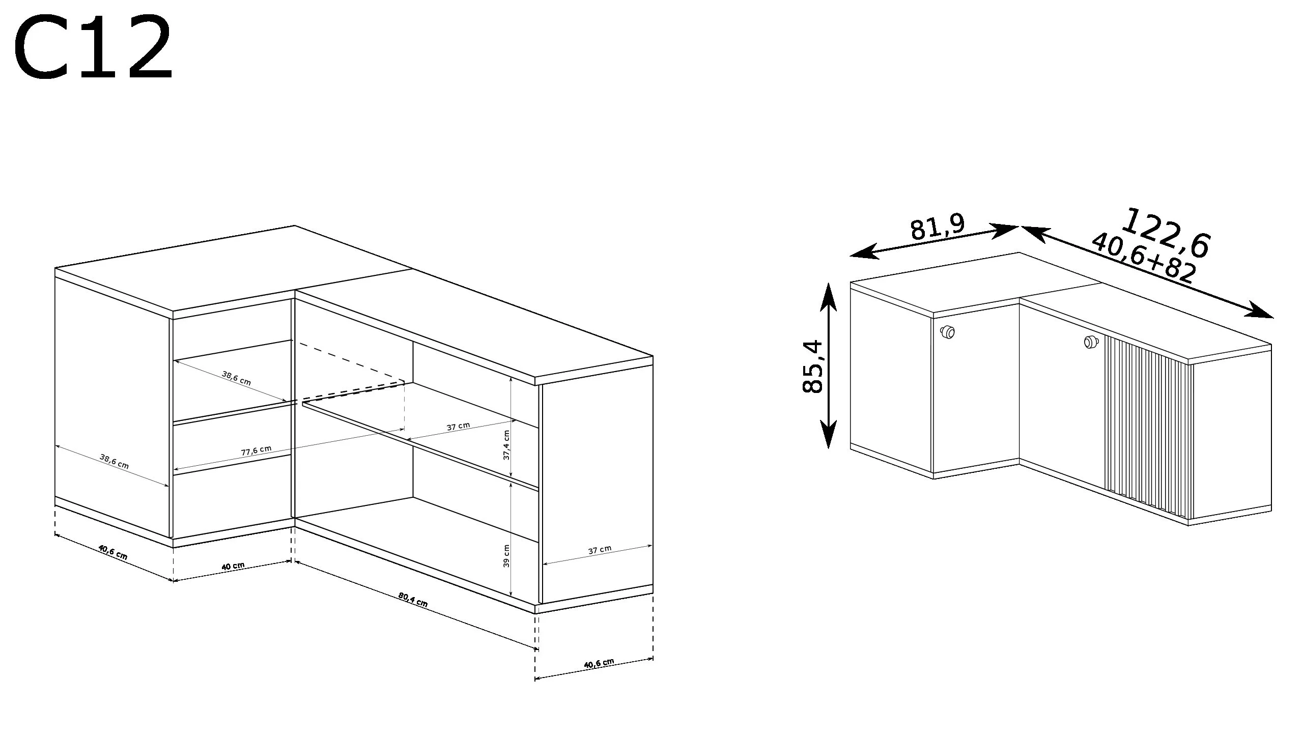Když začínáte s nákupem nábytku do obývacího pokoje nebo ložnice, často nevíte, jak využít prostor v rohu. Rohové komody jsou perfektním řešením; nemusíte se starat o umístění rostliny, lampy nebo křesla do rohu. Tento typ šatní skříně je praktickým řešením. Nic nemusí ležet ležet bez povšimnutí; všechno má své místo. Komoda s módními lamelami na jedněch z dvířek je nezbytným kusem nábytku ve vaší domácnosti. Uvnitř má komoda dvě police a můžete ji umístit na kovové nohy, které doplní interiér v industriálním stylu.