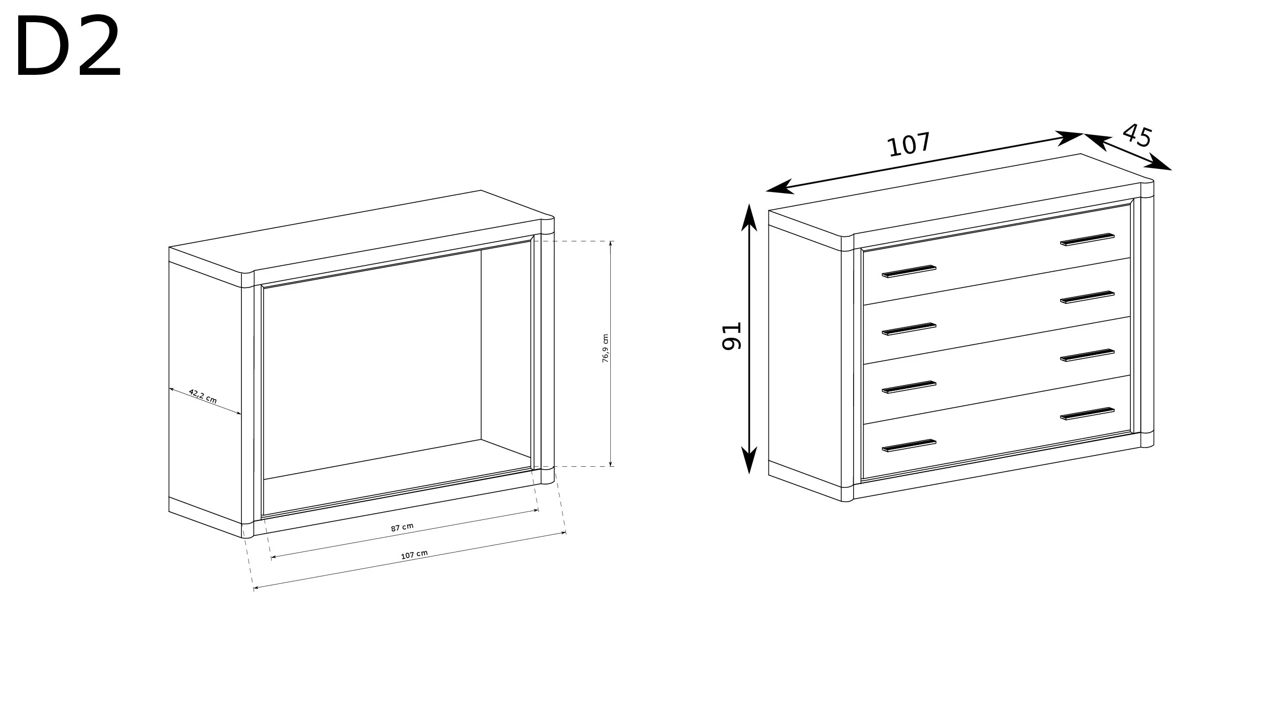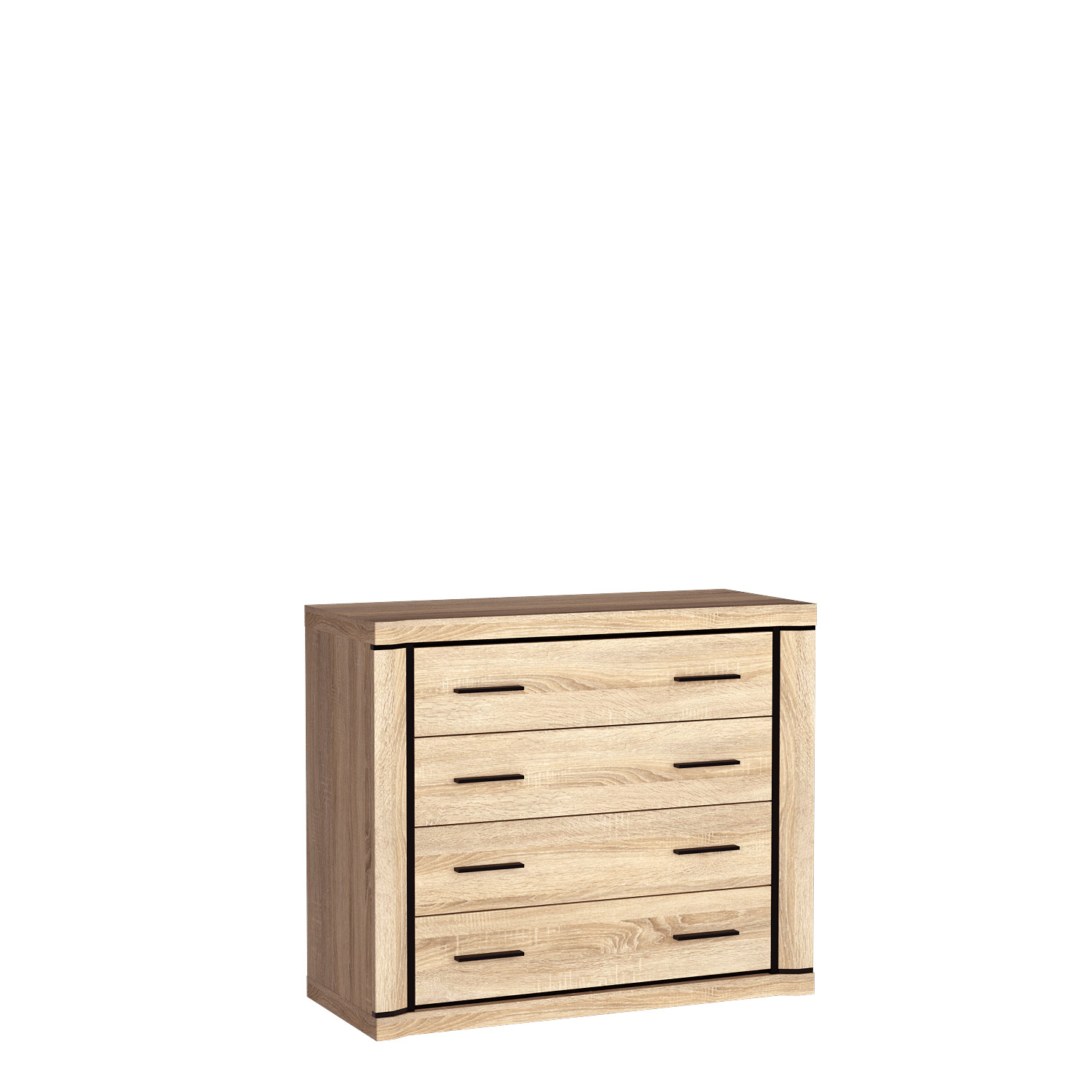Jednoduchá a prostorná komoda s černými úchyty, ideální pro uložení oblečení, osobních věcí a doplňků. Vyznačuje se krásným černým lemováním, které spolu s úchyty dodává nádech elegance a šiku. Celá kolekce Dallas vnáší do každé místnosti moderní industriální styl. Čtyři velké zásuvky umožňují rozsáhlou organizaci a úložný prostor. Umožní vám si její používání užívat a být spokojeni. K dispozici ve dvou barvách.