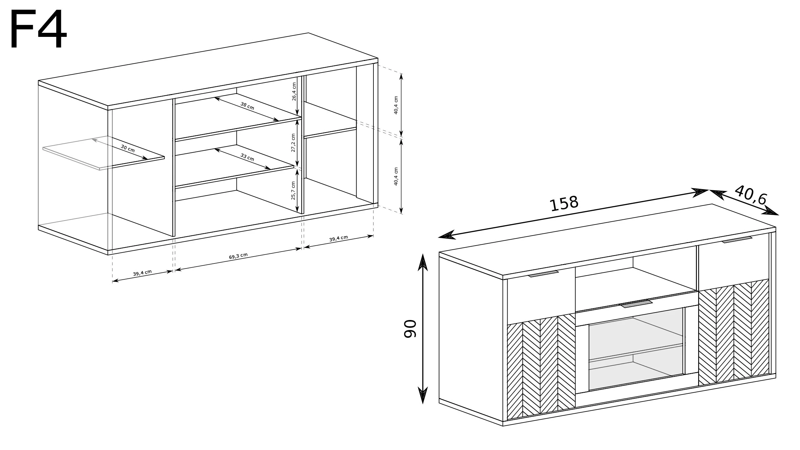 Kolekce Fonti kombinuje nadčasový klasický styl s moderními detaily. Přírodní karamelová dubová barva spolu s matnými černými úchytkami a čelními panely se vzorem rybí kosti vytváří harmonický a elegantní vzhled. Nábytek s jasnými geometrickými tvary a vyváženými proporcemi se snadno začlení do obývacích pokojů, ložnic i jídelních prostor. Fonti přináší interiérům sofistikovanost, teplo a současný styl.