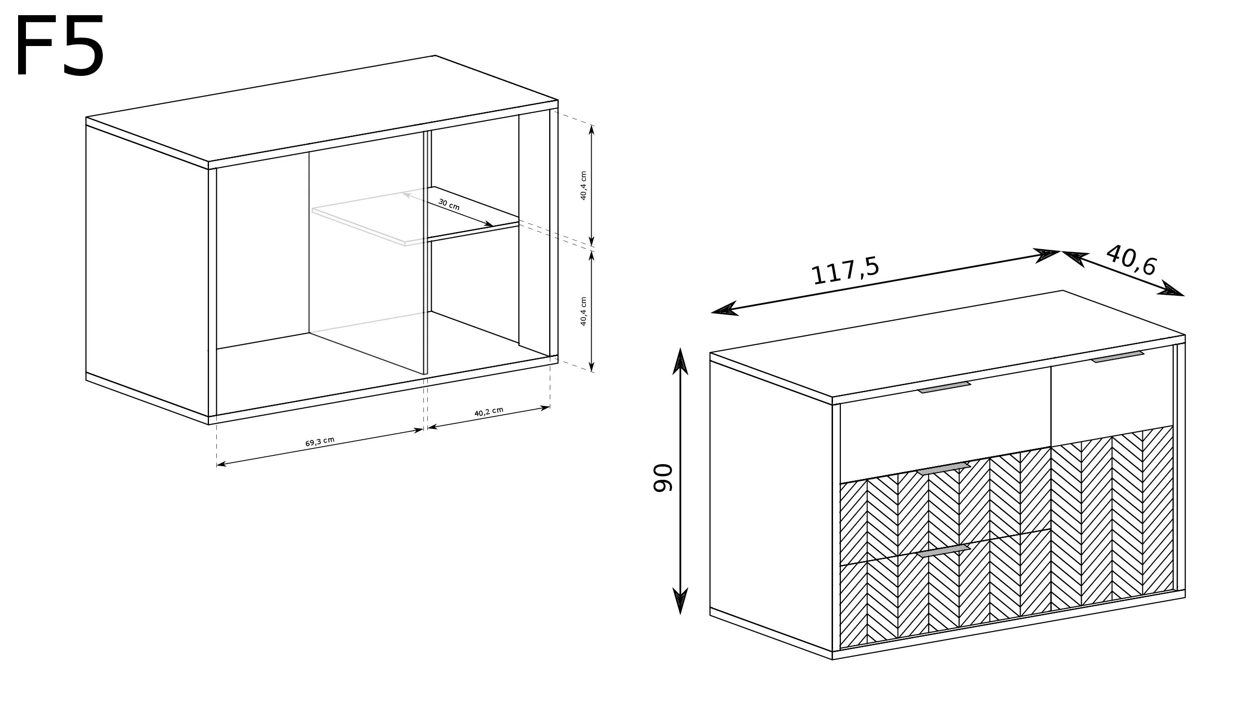 Kolekce Fonti kombinuje nadčasový klasický styl s moderními detaily. Přírodní karamelová dubová barva spolu s matnými černými úchytkami a čelními panely se vzorem rybí kosti vytváří harmonický a elegantní vzhled. Nábytek s jasnými geometrickými tvary a vyváženými proporcemi se snadno začlení do obývacích pokojů, ložnic i jídelních prostor. Fonti přináší interiérům sofistikovanost, teplo a současný styl.