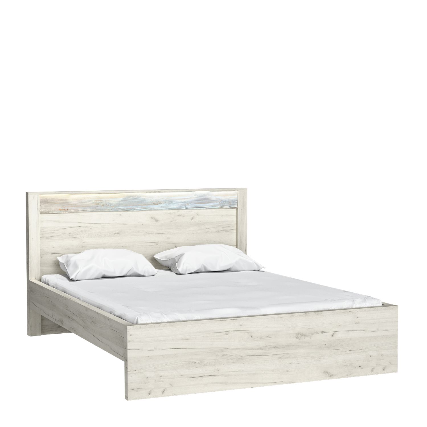 Odolná postel do ložnice z kolekce Indianapolis. Pevná konstrukce zaručuje roky příjemného používání. Pro vytvoření nádherné atmosféry lze přidat LED osvětlení. Postel se dodává bez matrace a je k dispozici ve třech barvách.