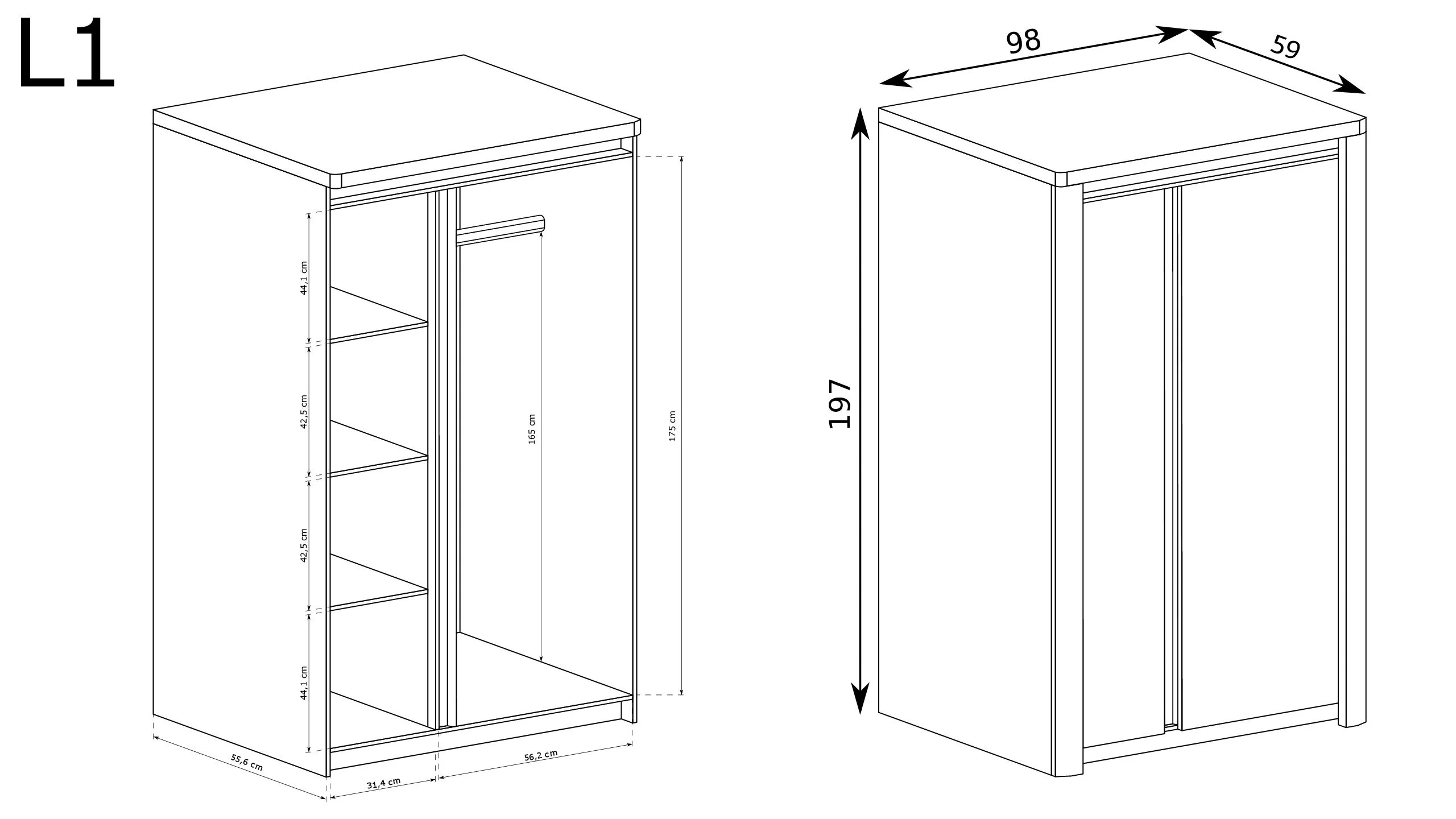 Moderní dvoudveřová šatní skříň v teplé, přírodní barvě ribbeck v kombinaci s bílou. Skříň nabízí dostatek prostoru pro zavěšení oblečení a také police pro organizaci dokumentů, ozdob a dalších doplňků. Lesklá bílá čela vylepší jakýkoli interiér a dodají místnosti designový vzhled.