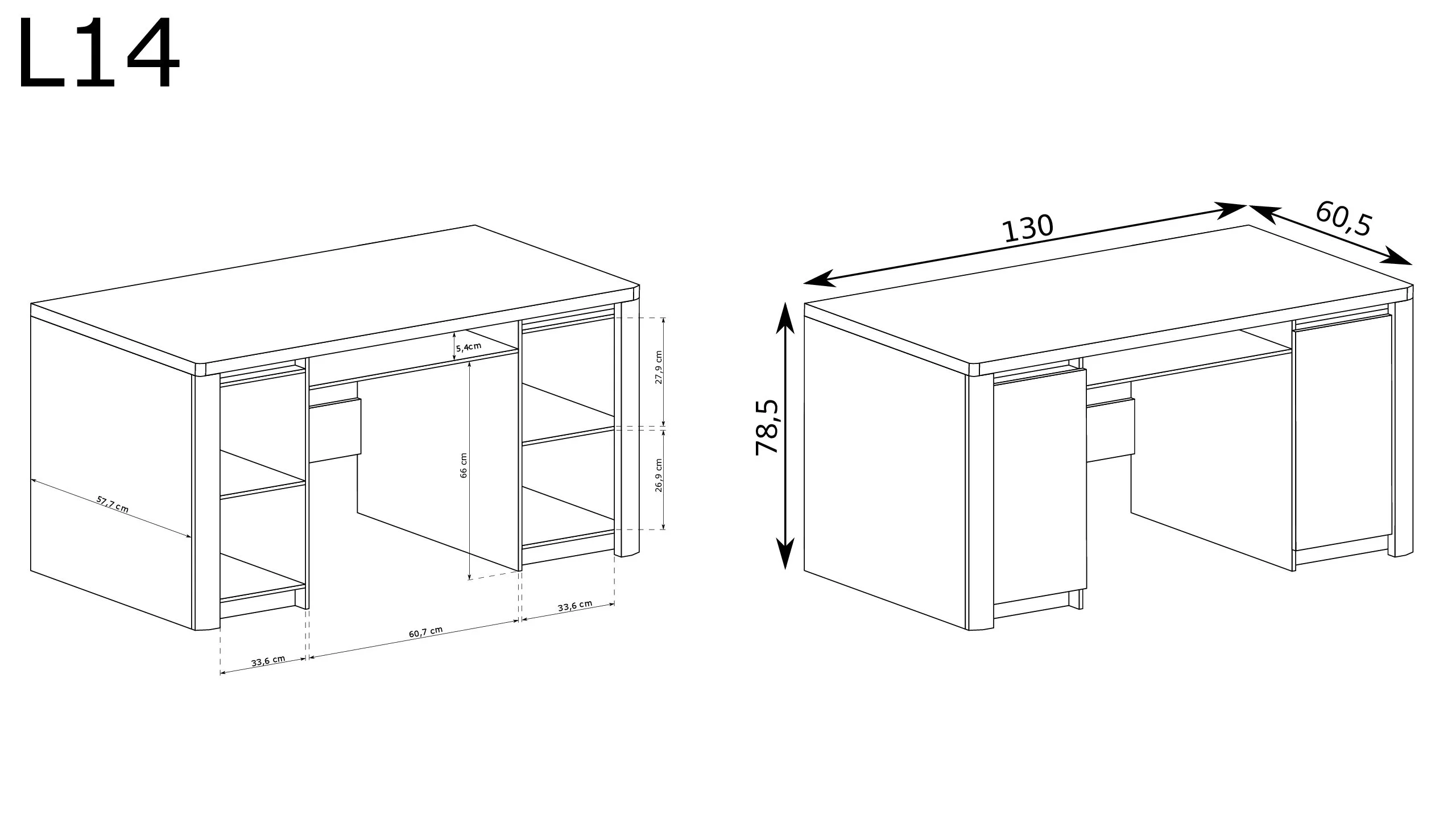 Stůl z nové kolekce Livinio. Je pevný a velmi odolný, disponuje dvěma skříňkami s policemi. Pokud na desku stolu umístíte notebook, najdete zde také prostor pro klávesnici, praktické dokumenty a psací potřeby. Dvířka skříňky mají panty s tlumeným zavíráním. Lesklý bílý panel na čelních stranách je jedinečný. Tento kus nábytku vylepší místnost a zpříjemní v ní práci. Stůl může sloužit i jako toaletní stolek do ložnice. Představte si útulný a stylový pokoj s toaletním stolkem a zrcadlem ze stejné kolekce nad ním. Tato sada se perfektně hodí na přípravu na večerní vycházku nebo na nanášení denního krému.