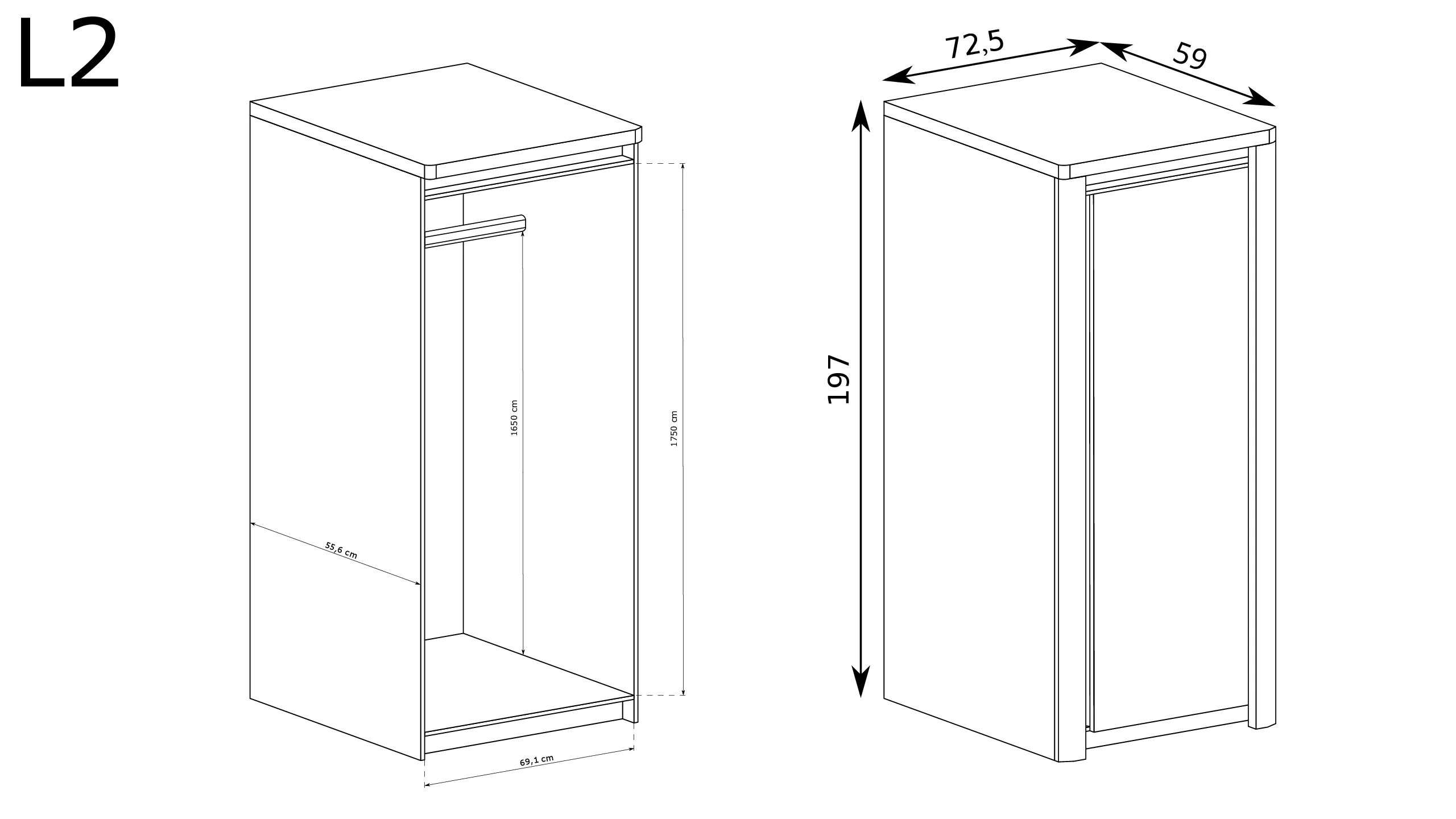 Jednoduchá, velká šatní skříň s jedními dveřmi a lesklou bílou přední částí. Je vybavena šatní tyčí na zavěšení košil, šatů nebo zimních kabátů. Je perfektním doplňkem k nábytku, který je již v místnosti. Skříň je široká téměř 73 cm a lze ji umístit vedle komody nebo vitríny. Lze přidat tři další police, čímž vznikne zcela nový úložný prostor na oblečení.