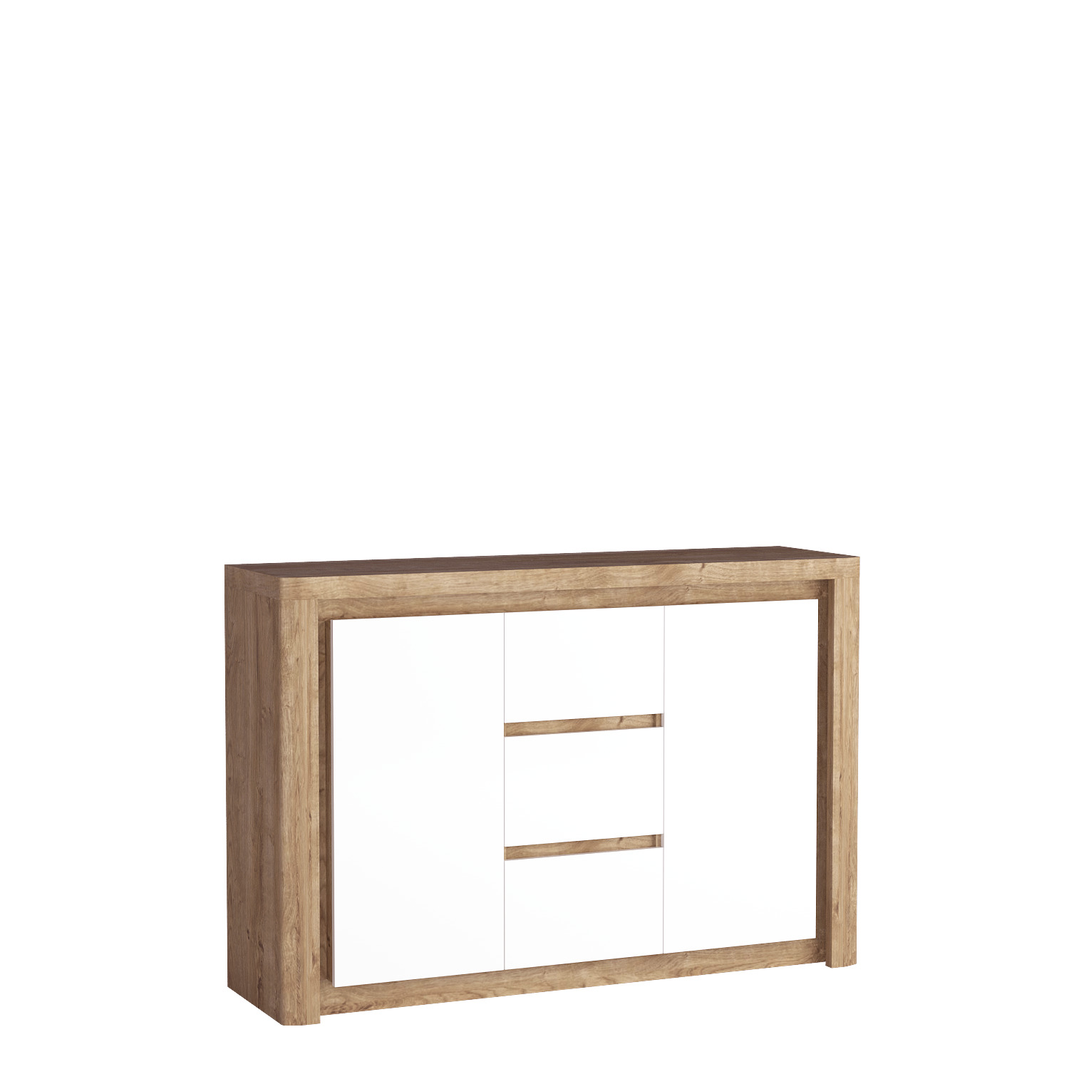 Inovativní komoda se třemi zásuvkami ve střední části a dvěma skříňkami. Nádherná, přírodní barva Ribbeck se snoubí s lesklými bílými dvířky. Komoda je velmi velká a prostorná. Perfektně se hodí do ložnice nebo dětského pokoje. Díky pantům a vodítkům s tlumeným dovíráním se nebudete muset bát, že někoho vzbudíte. Každá skříňka má jednu polici, což poskytuje dostatek úložného prostoru. Komoda je také osvětlena, což díky přirozenému, teplému LED světlu zajistí ještě větší relaxaci večer.