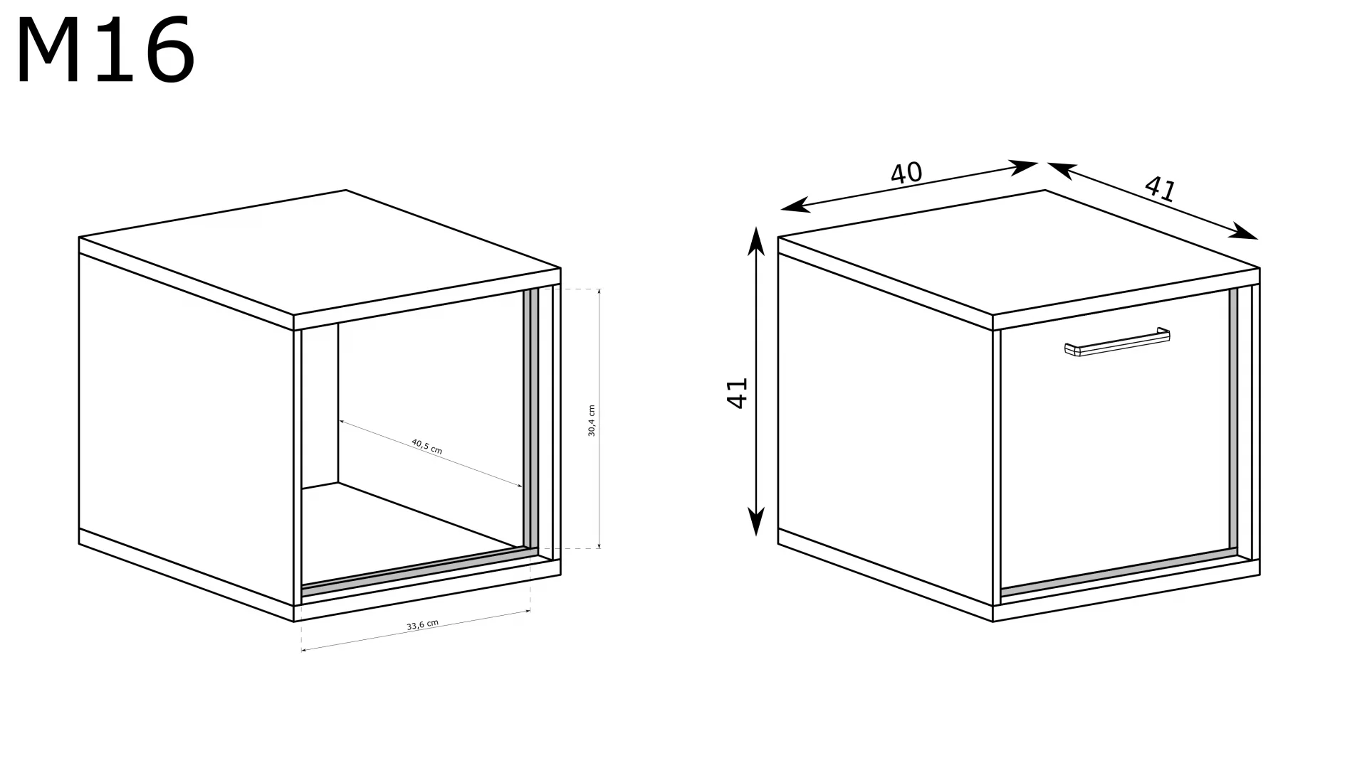 Malý noční stolek, který jistě zaplní prostor vedle postele. Praktický a elegantní, poskytuje úložný prostor na drobnosti. Vyroben ze světlého materiálu a s tmavými akcenty prostor zvětší. Volitelně lze přidat nožičky, které zvýší výšku stolku o 10 cm.