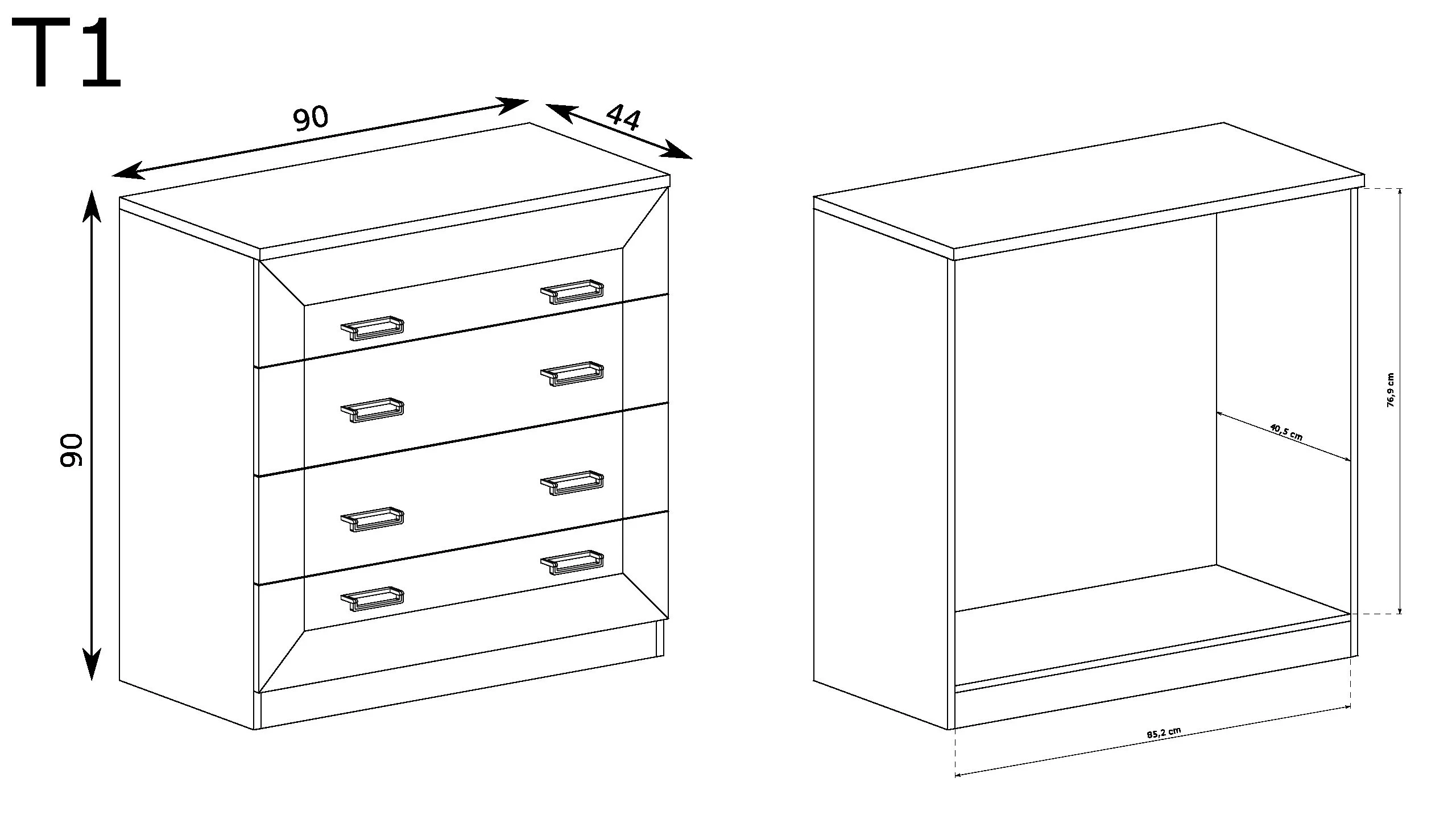 Naše komoda pojme spoustu věcí a dlouho si zachová svou krásnou barvu. K dispozici ve dvou odstínech dubu, je to perfektní kousek do ložnice, obývacího pokoje nebo dětského pokoje. Kovové úchytky dodávají kouzlo. Plynulé posouvání zásuvek, kterých je celkem čtyři, je zajištěno vysoce kvalitními výsuvy.
