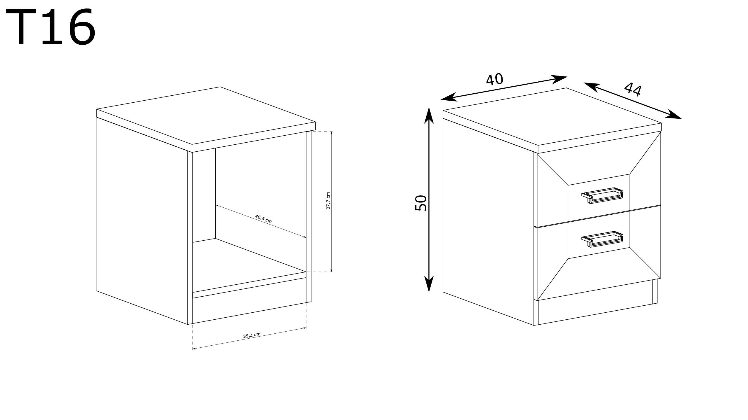 Malý noční stolek, ideální pro odložení knihy, budíku nebo sklenice vody. Má dvě malé zásuvky na drobnosti. Spolu s postelí TADEUSZ tvoří skvělou kombinaci.