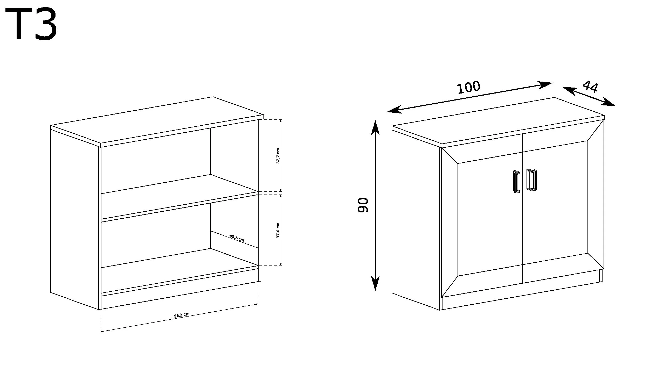Unikátní skříňka se dvěma dvířky a jednou policí. S krásnými kovovými úchyty. K dispozici ve dvou barvách.