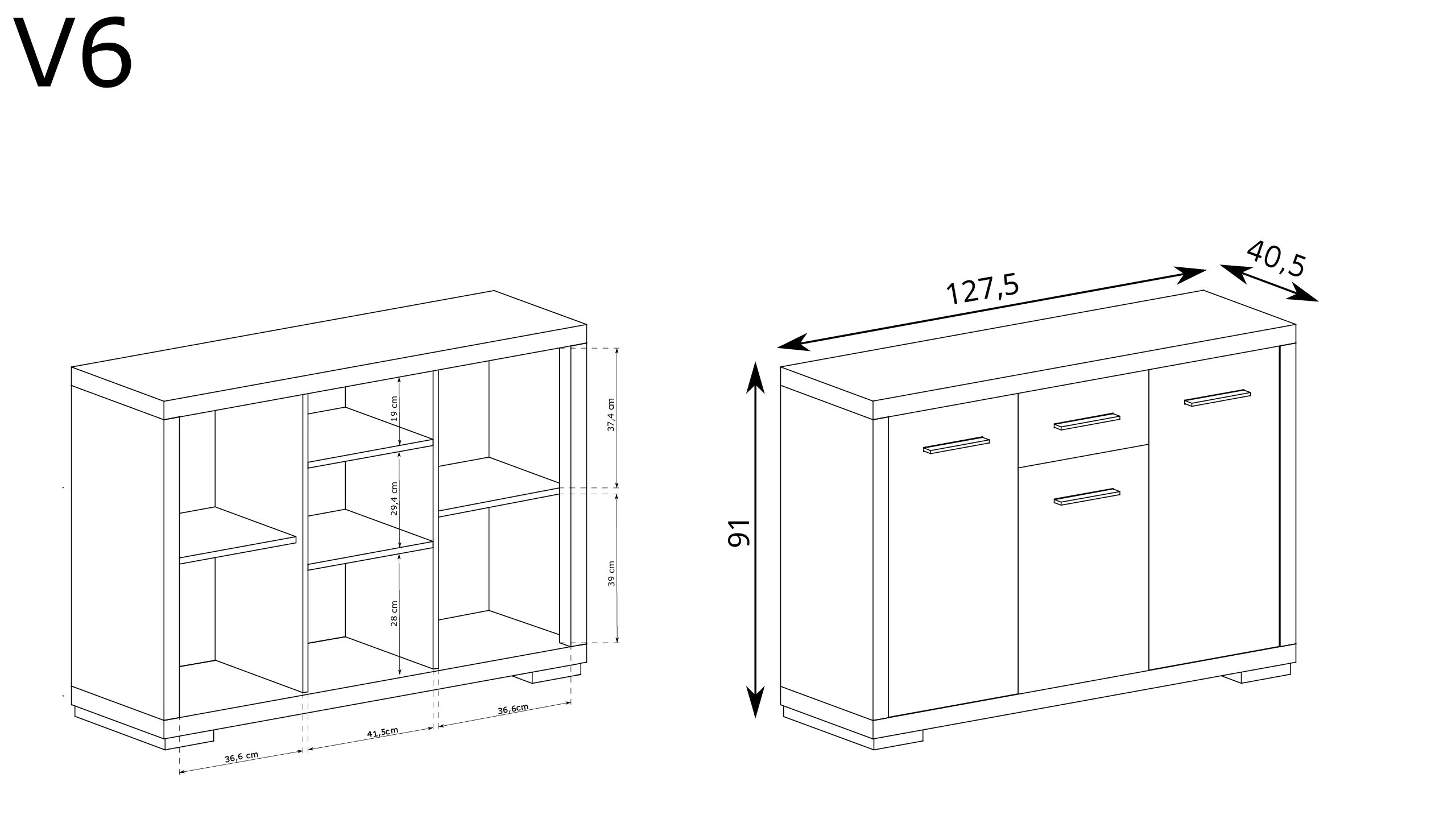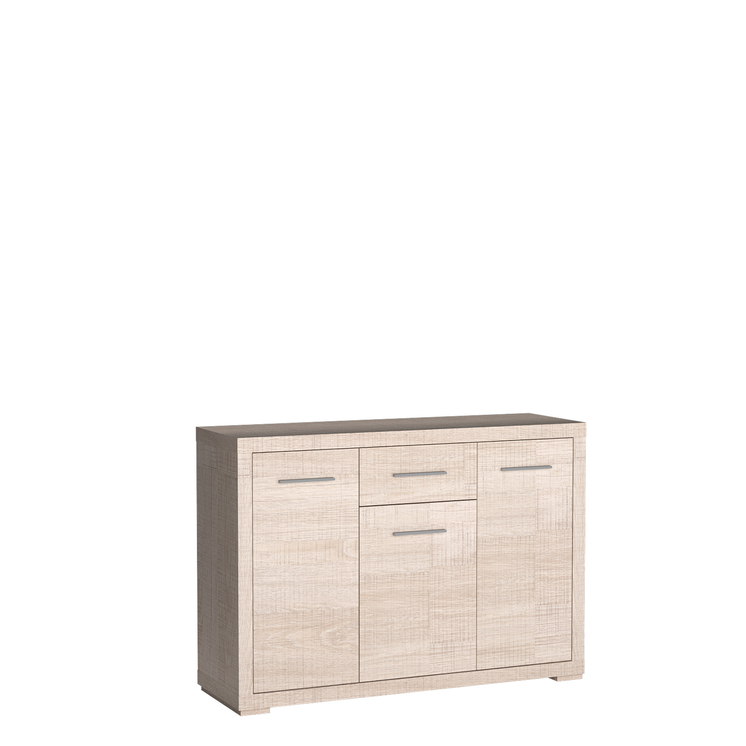 Tato komoda má troje dvířka, každé s jednou policí. Má také jednu zásuvku, což umožňuje snadnou organizaci a skladování. Kovové úchytky doplňují design. Je ideální do obývacích pokojů, ložnic a chodeb, ale i do kanceláří a pracoven. K dispozici ve čtyřech barvách.